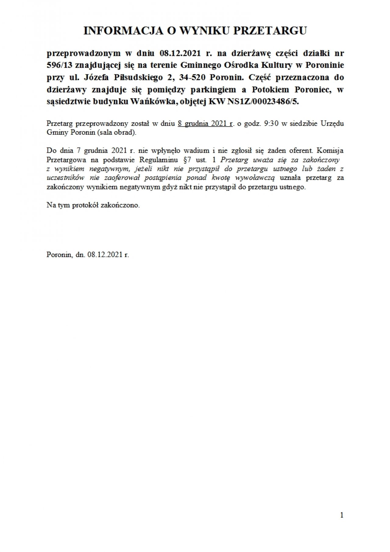 Informacja o wynikach przetargu 3