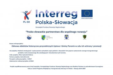 Gmina Poronin wraz z Obec Liptovska Kokava zrealizowała mikroprojekt pn. „Odnowa obiektów historyczno-przyrodniczych Liptova i Gminy Poronin w celu ich ochrony i promocji”. Projekt współfinansowany przez Unię Europejską z Europejskiego Funduszu Rozwoju Regionalnego oraz Budżetu Państwa za pośrednictwem Euroregionu Tatry w ramach Programu Współpracy Transgranicznej Interreg V-A Polska – Słowacja 2014-2020.